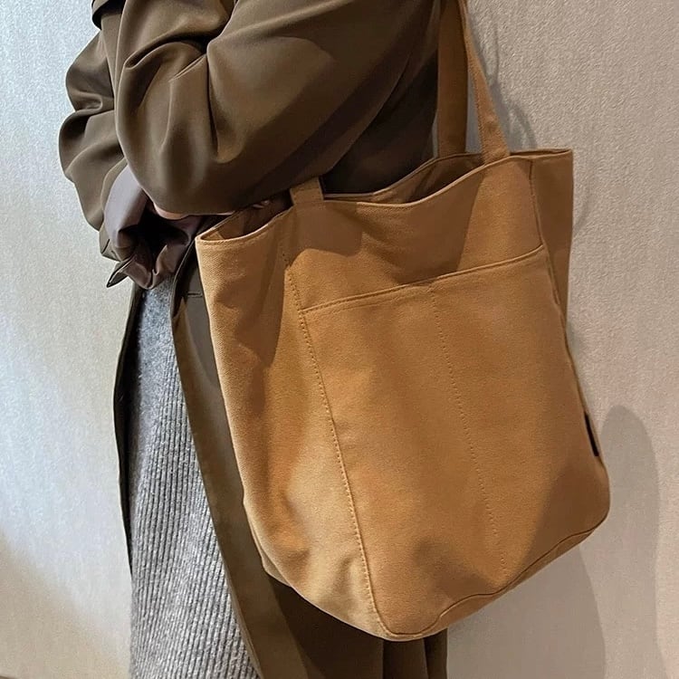 シンプルなデザインのキャンバストートバッグ。